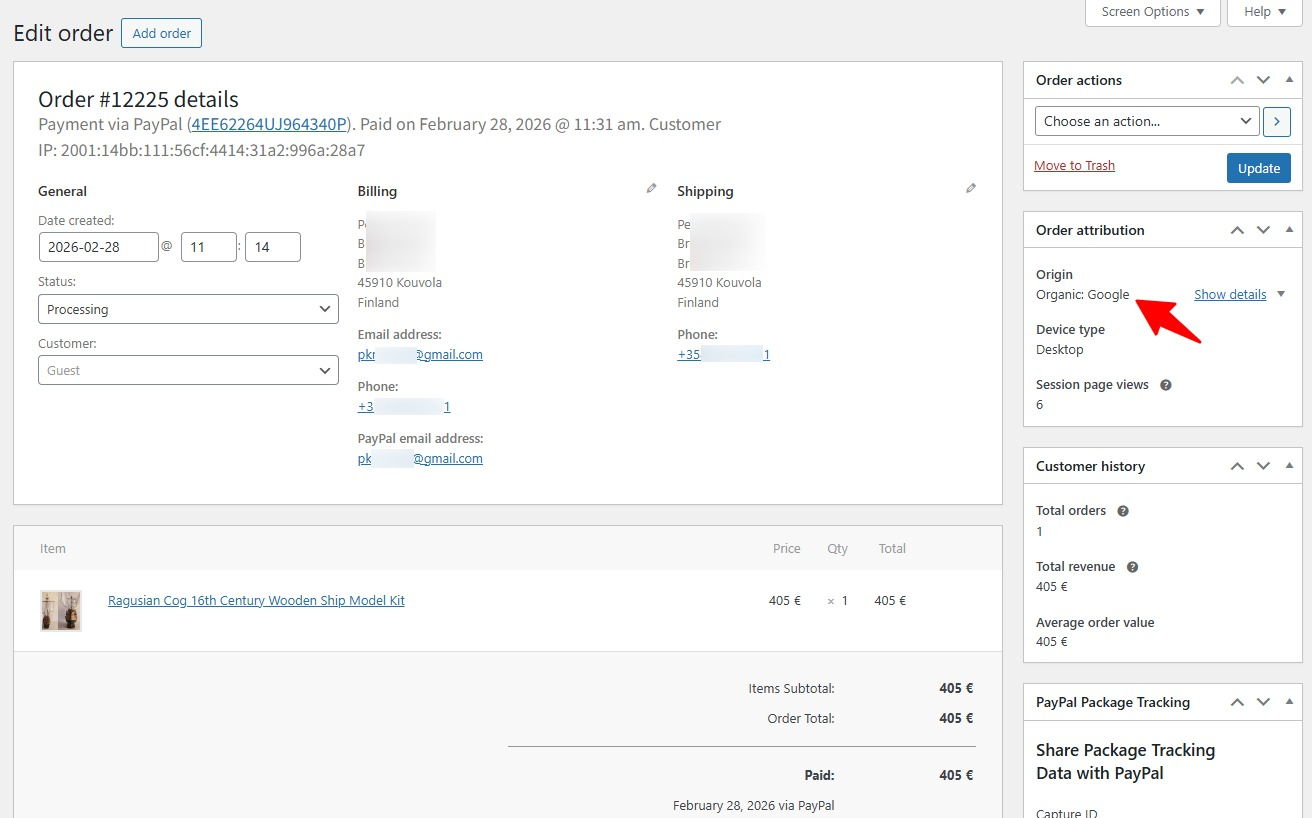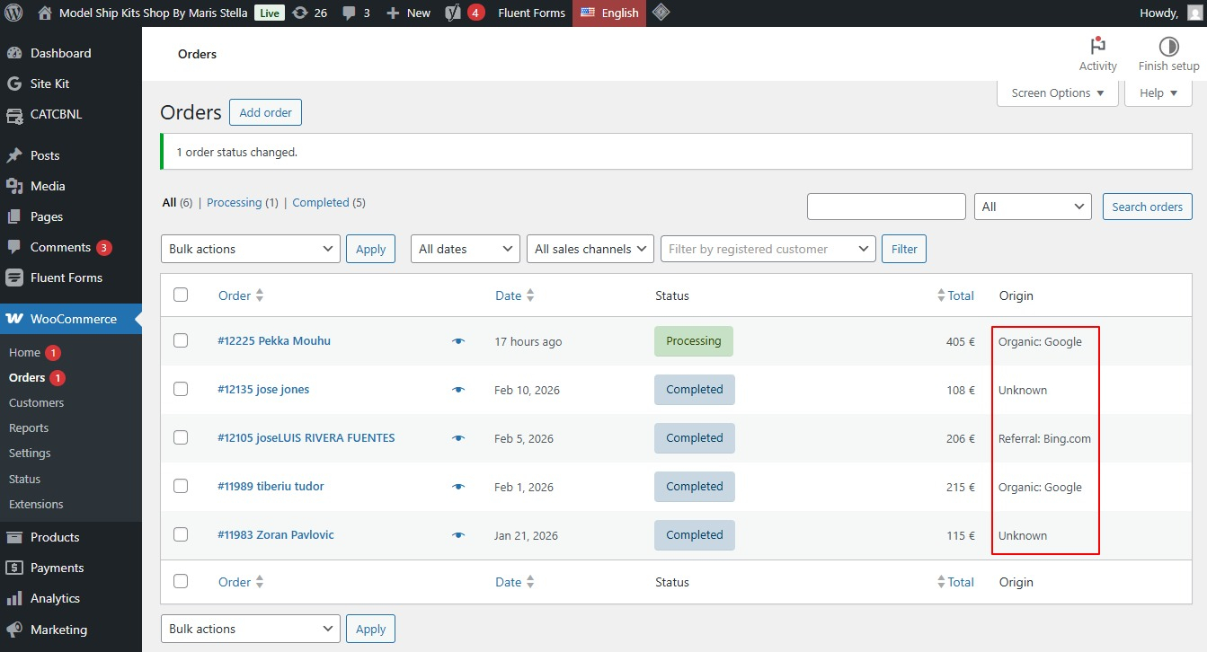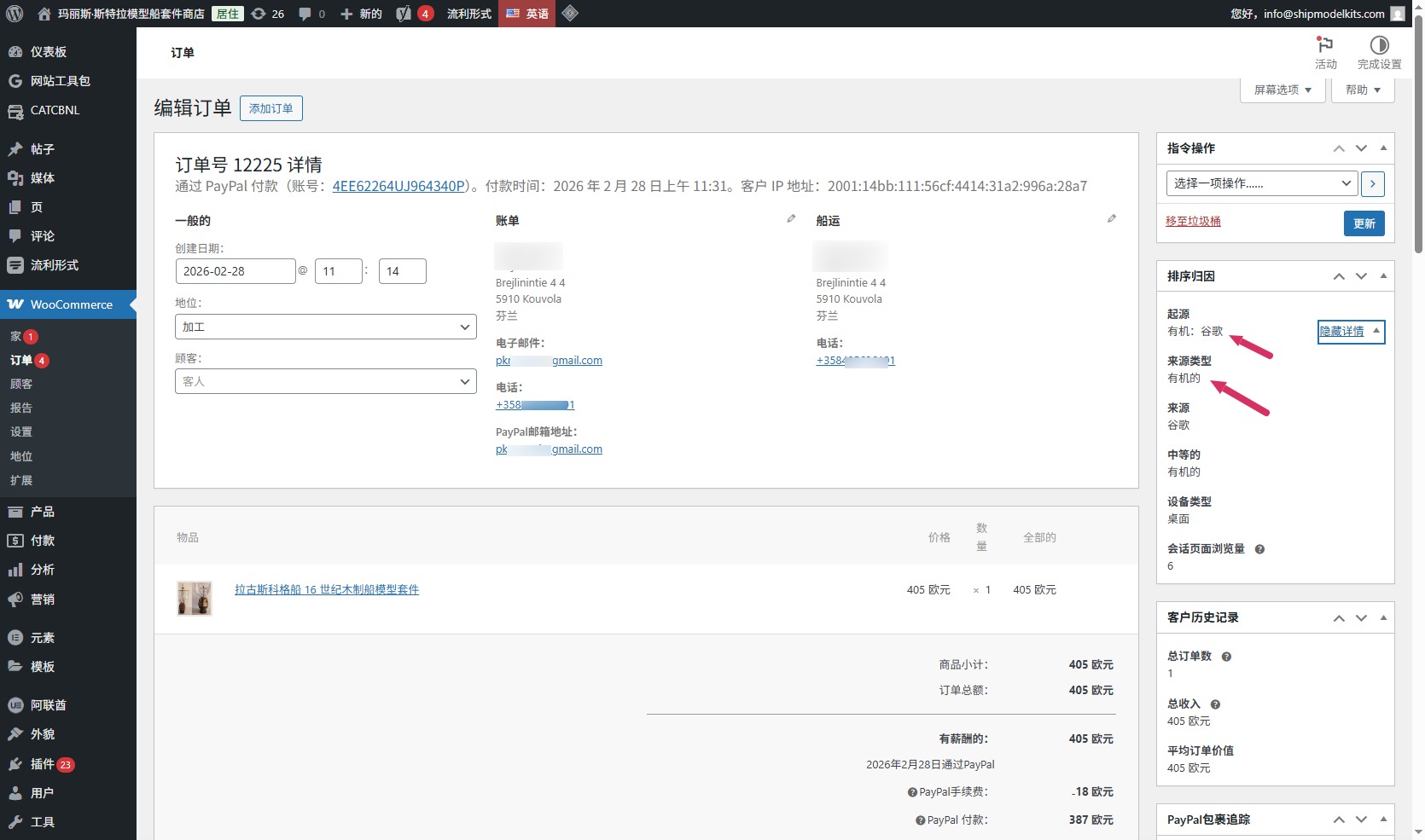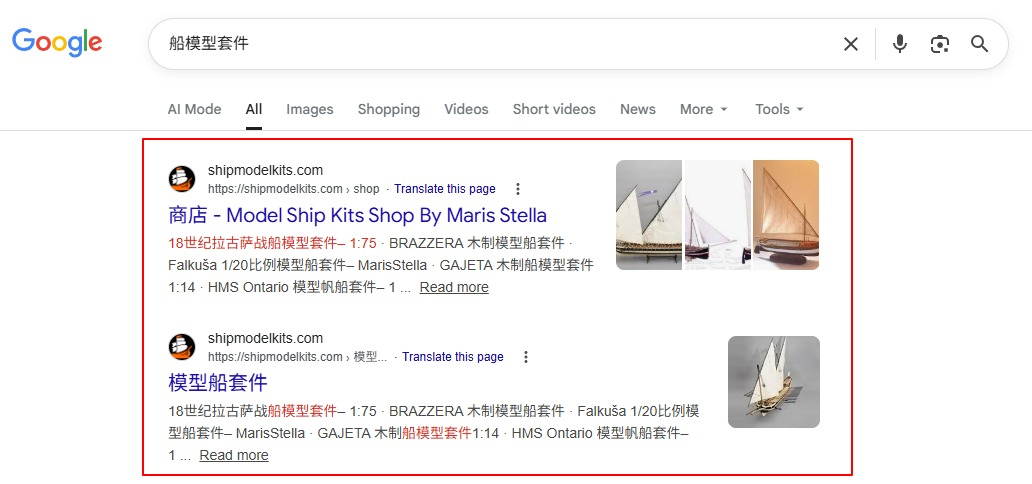 它不是靠广告投放换来的流量,而是通过内容、关键词与时间积累,自然获得的免费流量。比如我帮欧洲客户做的这个船模型套件网站,上线两个月,已经收到多个订单,全部来自Google和Bing搜索,即自然有机流量: