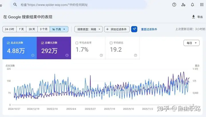 比如我这个网站,所有内容都是AI写的,18个月,带来近300万Google搜索展现,近5万次点击,每月100加询盘,大量关键词在Google、Bing、ChatGPT内拥有排名和推荐,每天带来源源不断的免费流量,这一个项目,一年至少为我的客户带来数百万的业绩,也为我带来数十万的收益。