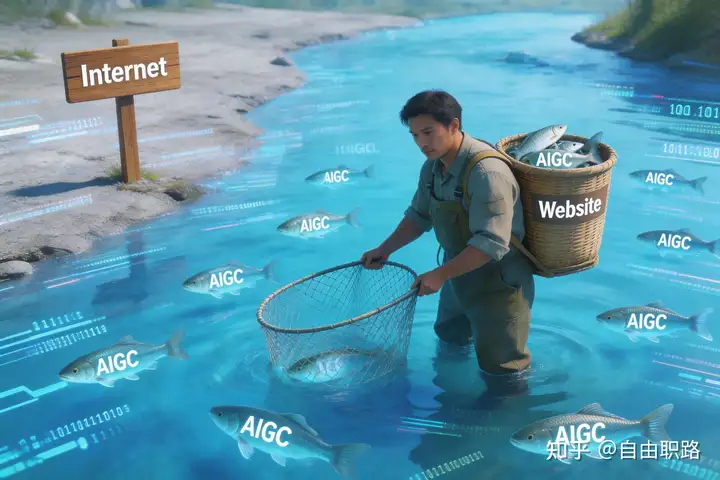 互联网就像河流,鱼就是AIGC(AI生成物),包括小龙虾干的一系列劳动成果,这些都是产出,除了产出还需要仓储和销售变现,否则鱼再多,如果没有渔网、背篓和自己的私人鱼塘这些容器,也只能是看着它游走,你拿不住,变不了现,就跟你没关系。